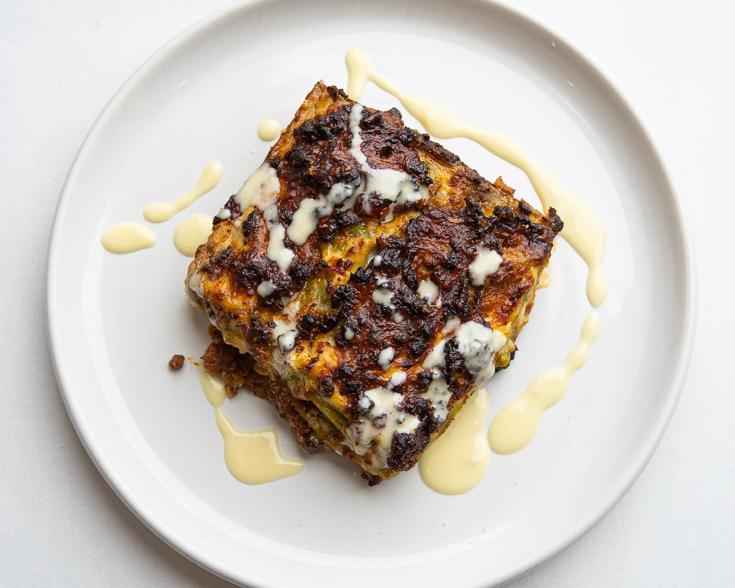 Traditional lasagna with free-range pork and beef ragu' Bolognese